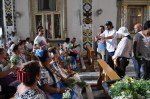 Finalmente se dio la orden de iniciar. La música empezó, los cantos llenaron el ambiente. Los fieles acompañaban la melodía con palmadas y agitando en alto sus ramitos de flores. La cámara portátil enfocaba a los feligreses en medio de una nube de humo que daba misticismo a la iglesia.