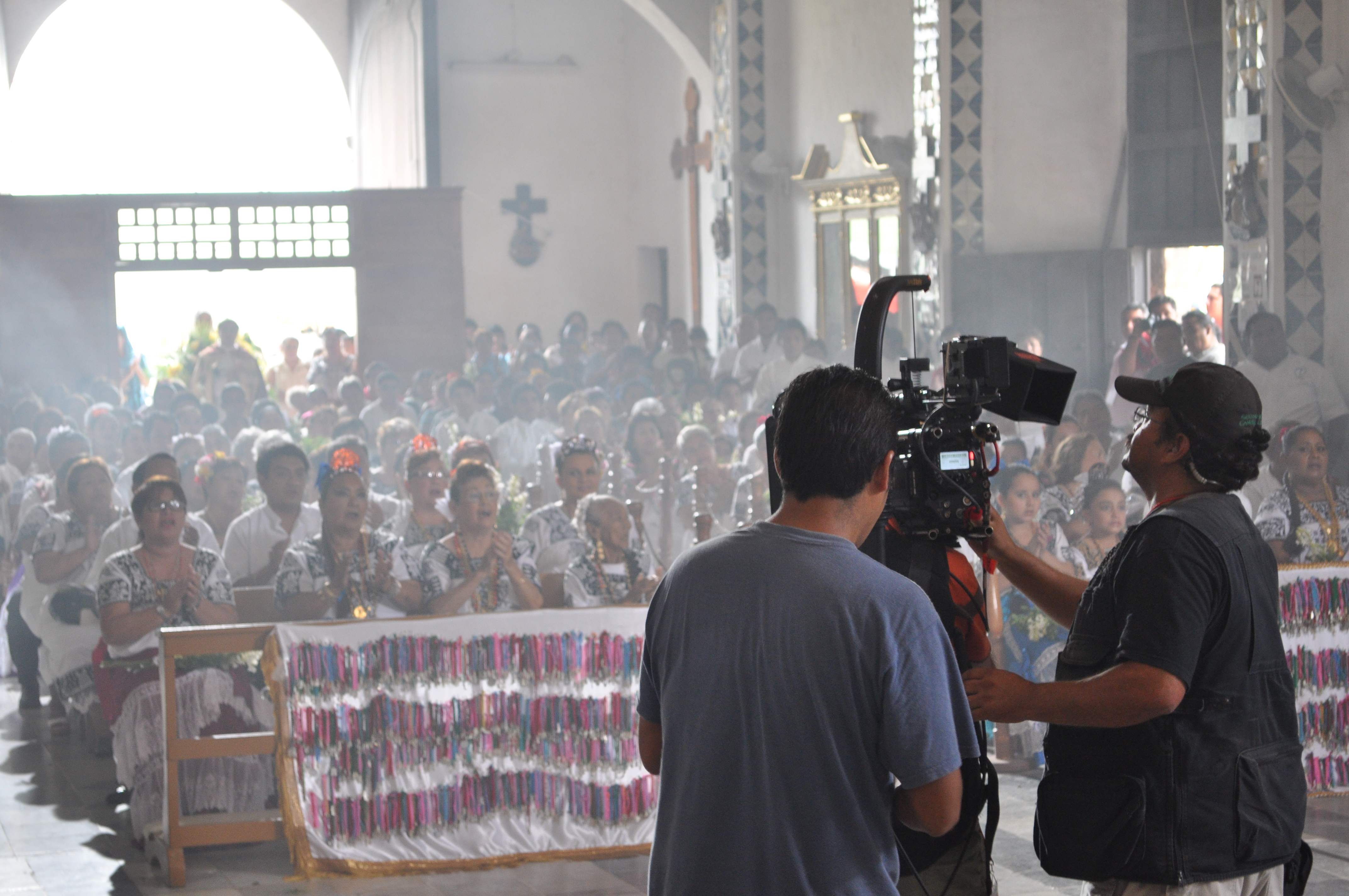 Mientras, la iglesia se fue llenando del humo del copal que quemaba el encargado de utilería de la producción. «Sóplale más, necesito más humo aquí». El encargado de la Foto Fija cambiaba de lente, porque «éste no me va a servir para esa toma».